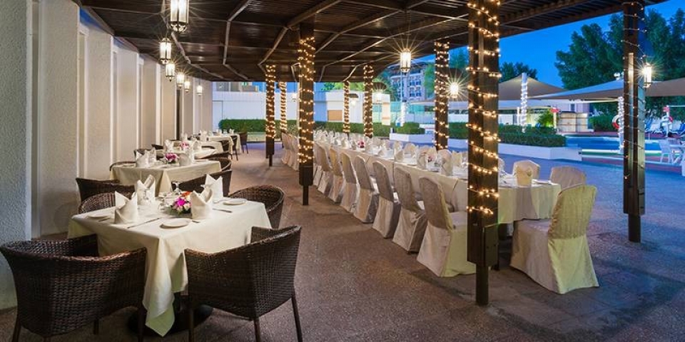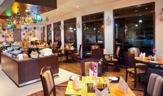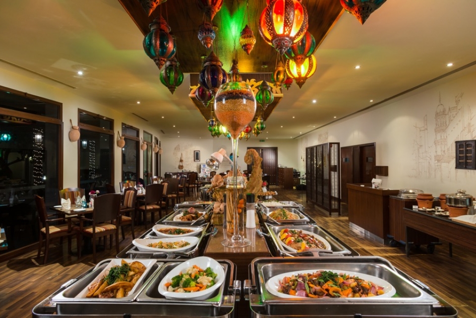 Dispone di due ristoranti: Al Falaj Restaurant a buffet e Tokyo Taro restaurant giapponese e a la carte.