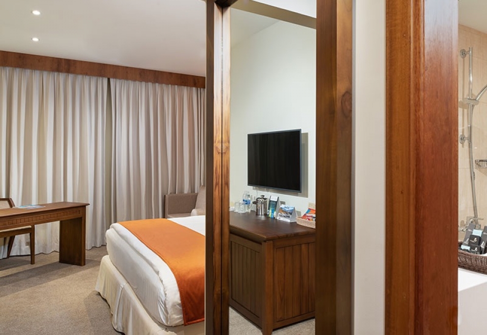 L'hotel dispone di 152 camere con letti doppi o matrimoniali, servizi privati, aria condizionata autonoma, TV con canali satellitari, cassaforte, frigobar, bollitore per tè e caffè, asciugacapelli, ferro da stiro. Gli amenity del bagno includono: shampoo, lozione per il corpo, gel doccia, cuffia per la doccia, kit da barba, kit da cucito, spazzolino e dentifricio.