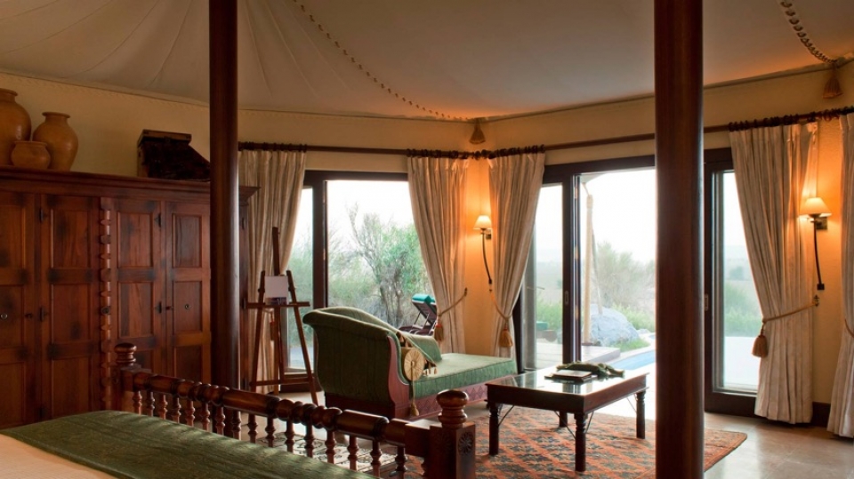 Il complesso esclusivo è composto da lussuose e raffinate suites in muratura ispirate alle tende beduine ed arredate con materiali pregiati, preziosi tessuti ed oggetti di artigianato locale tutte con splendida vista sul deserto, piscina privata con controllo della temperatura dell’acqua circondata da patio con sdraio, ampio bagno con cabina doccia e vasca, area salotto, tv a schermo piatto con ricezione satellitare, minibar, cassetta di sicurezza, aria condizionata. Le suites sono molto spaziose, dai 75mq della Bedouin Suite ai 530mq della Suite Presidenziale.
