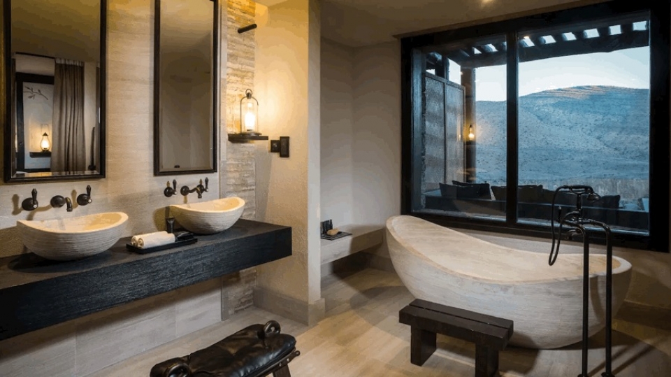 Le spettacolari vedute sulle montagne sottostanti, le spaziose piscine gli arredi fatti con materiale locale, gli oggetti di artigianato, le porte artigianali fatte in legno massello, contribuiscono a creare quella magica atmosfera che fa di questo hotel uno dei più lussuosi del Sultanato. Ricordiamo che per le normative stradali vigenti in Oman si può accedere alla montagna di Jabal Akdar solo con fuoristrada 4x4.