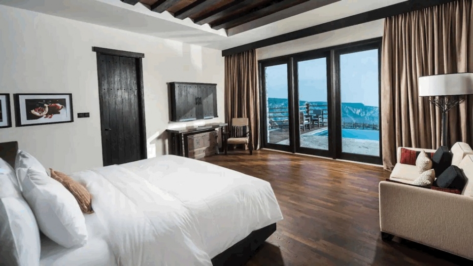 Il resort dispone di 78 suite e villa di varie tipologie: Mountan view, Horizon View Ridge view, Jabal Terrace, Loft suite. La tipologia Mountan view dispone di camere comunicanti. Tutte le camere dispongono di living room, servizi privati, aria condizionata, accappatoio e ciabattine da camera.