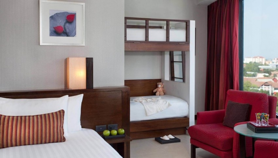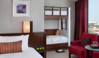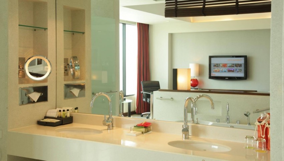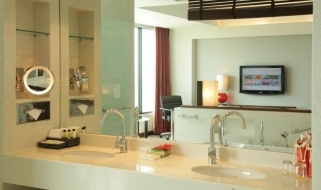 Dispone di 297 spaziose camere e suites. Tutte le camere e suite sono arredate in stile contemporaneo con materiali naturali come legno scuro, pietra levigata e vetro. La loro caratteristica è il design open-space, finestre panoramiche dal pavimento al soffitto e un balcone privato. Dispongono di aria condizionata, TV LCD, lettore DVD, accesso wi-fi internet, necessario per tè e caffè, cassetta di sicurezza, minibar, asciugacapelli. Possibilità di camere comunicanti.
