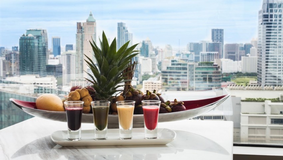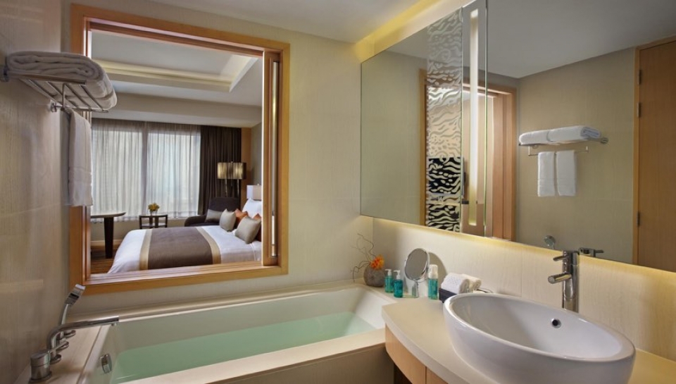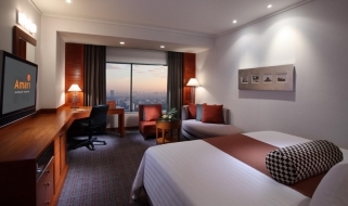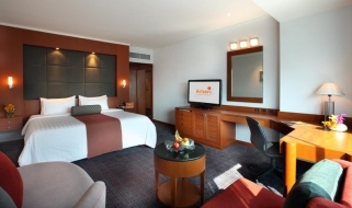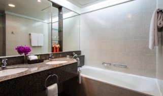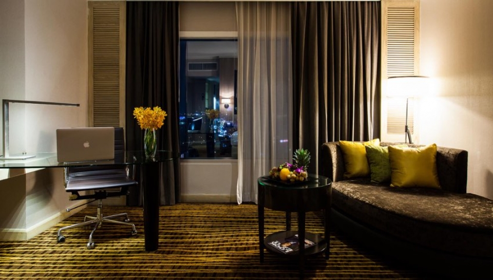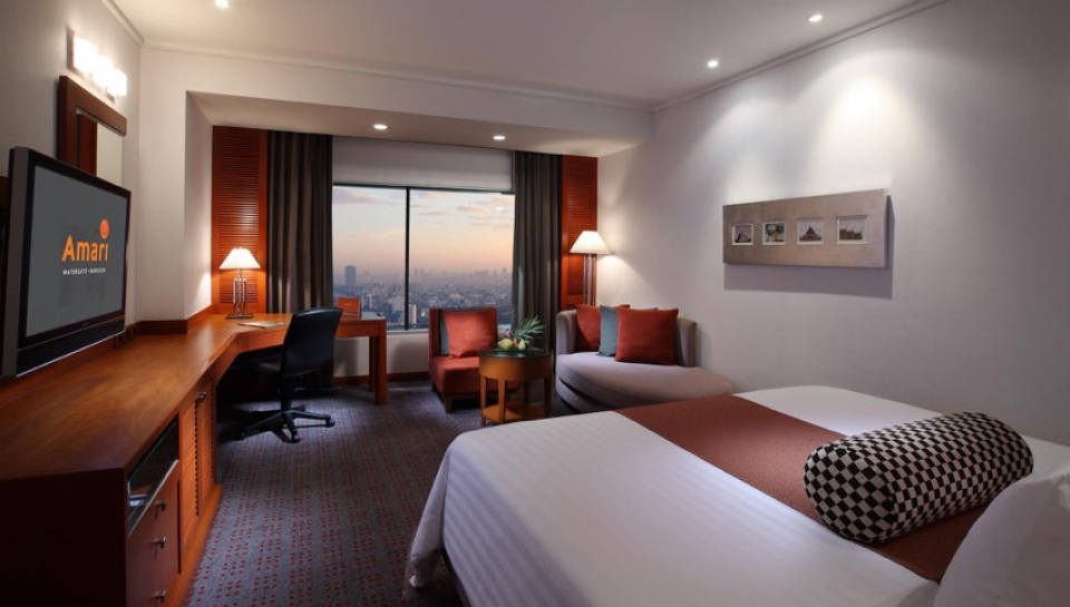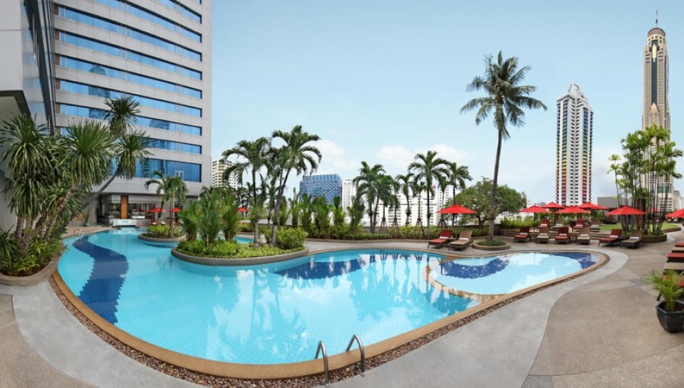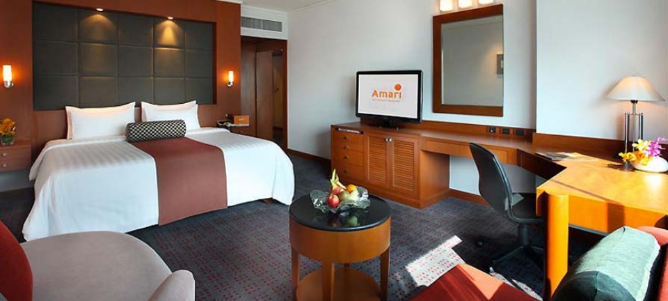 Le 569 tra camere e suites di varia categoria sono elegantemente arredate in uno stile thailandese moderno ed offrono dalle ampie vetrate bellissime vedute panoramiche della città. Tutte le camere dipingono di servizi privati, aria condizionata, cassetta di sicurezza, minibar, tv con ricezione satellitare, telefono, internet, hi-fi, asciugacapelli. Disponibili camere per disabili e camere comunicanti.