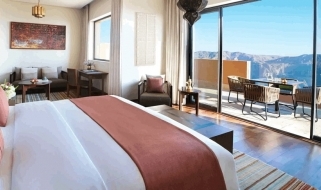 Anantara Resort a Jabal Akhdar, raffinato ed esclusivo gioiello situato a Saiq Plateau, si apre con la vista sui Canyon da Diana Point, con le coltivazioni terrazzate della "montagna verde" dove a primavera sarete avvolti dal profumo delle rose che vengono coltivate a Jabal Akhdar.