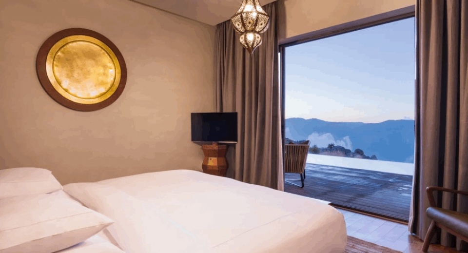 L'hotel dispone di 82 camere e 32 ville di varie tipologie: camere premier con vista Canyon, camere de luxe con vista Canyon, ville con una due o tre camere da letto. Tutte le camere dispongono di balcone o terrazzo, bagno con doccia a pioggia, vasca e due lavabo, aria condizionata, minibar, scrivania, WiFi gratuito, cassaforte, macchina Nespresso, bollitore per il tè, TV LED interattiva, hub multimediale e sistema audio Bluetooth.
