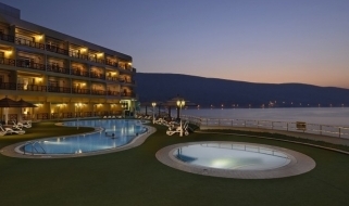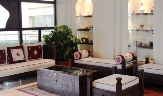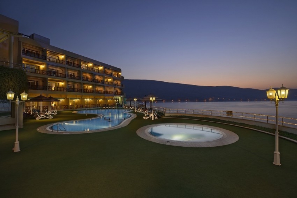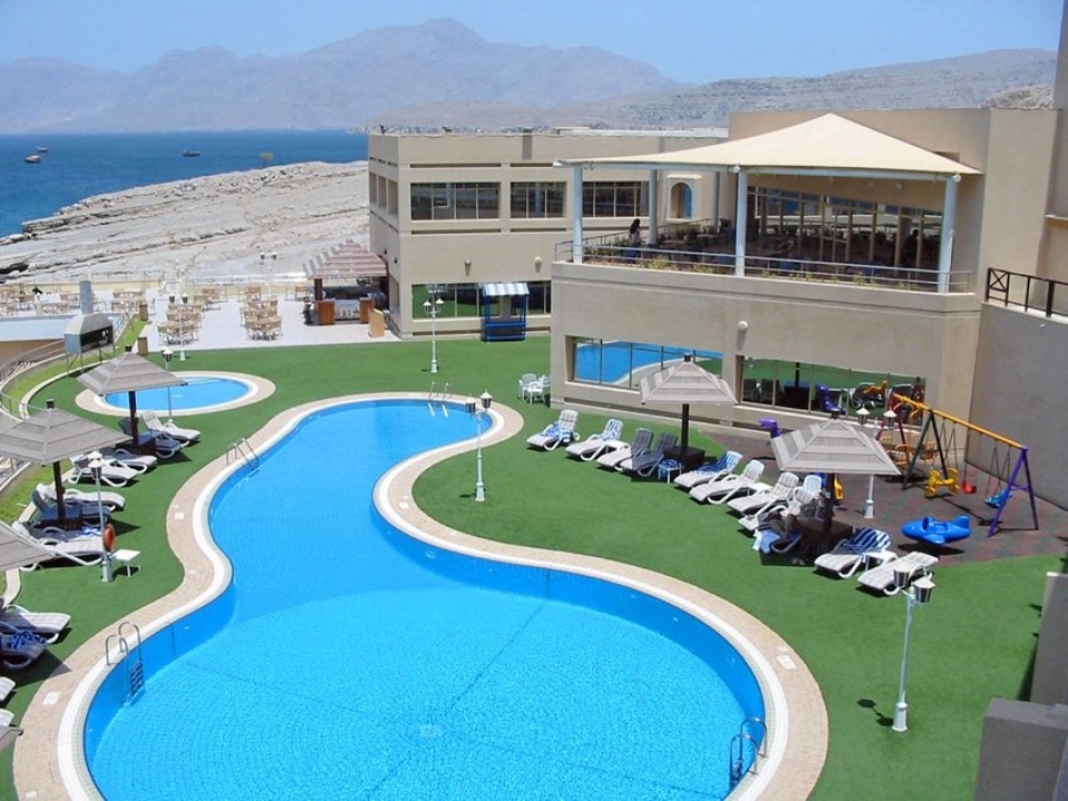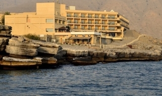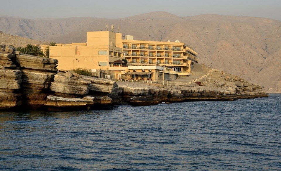 La costa, in quel tratto di mare, è rocciosa con i suoi stupefacenti fiordi e l'hotel è situato a picco sul mare pertanto non ha spiaggia ma è la soluzione ideale per chi vuol effettuare escursioni nella penisola del Musanadam senza rinunciare al confort in un'ambiente molto accogliente, moderno e giovane; è qui infatti esposta una collezione di pop art di un giovane artista.