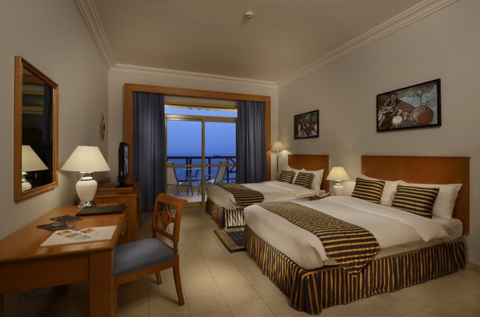 SERVIZI: piscina per adulti e bambini attrezzata con lettini ed ombrelloni, raffinati bar e ristoranti: Finyon (Cafe), Al Tal Oriental tent dove viene servita shisha e snak, Darts bar, Al Mawra Restauran aperto tutto il giorno per colazione pranzo e cena; centro fitness, palestra, sala conferenza, negozio, diving centre, si organizzano battute di pesca, servizio di lavanderia, stireria, servizio di cambio valuta, connessione WiFi gratuita in tutto l'hotel, servizio in camera fino a mezzanotte, deposito bagagli, business centre, tour desk.