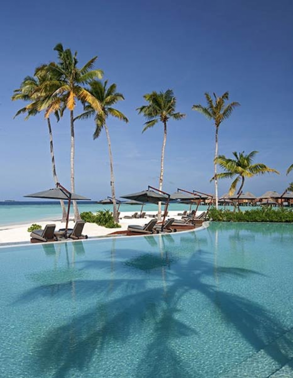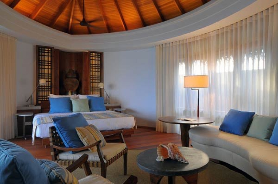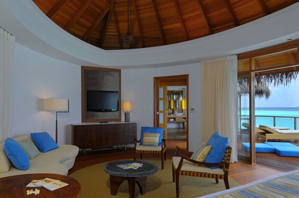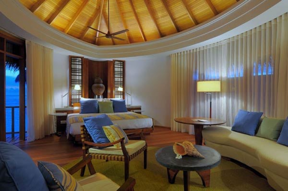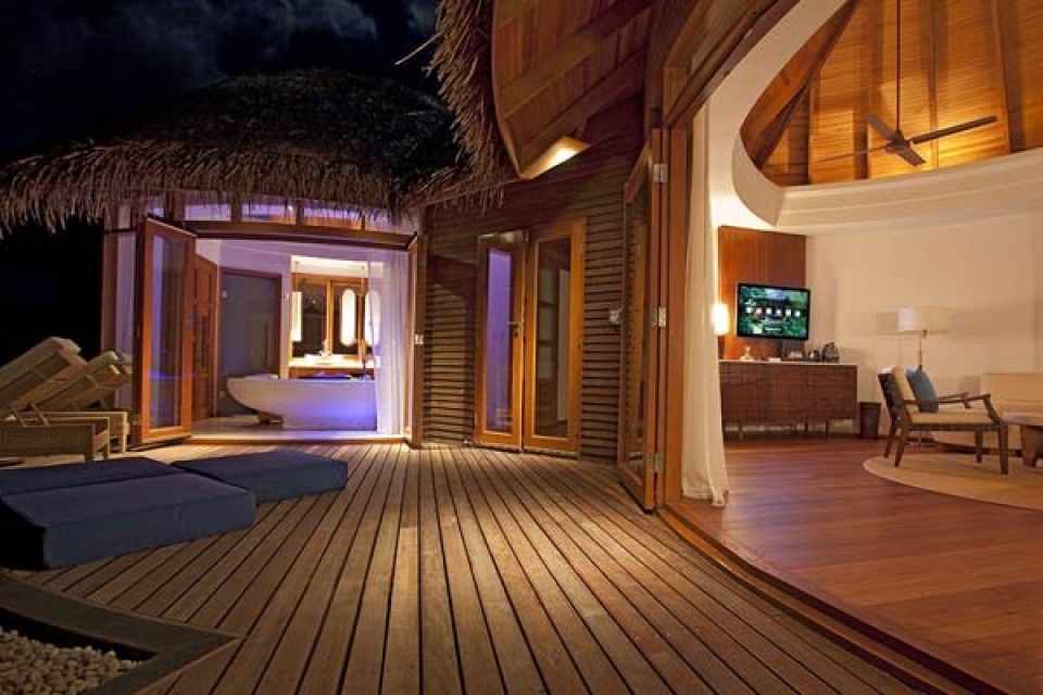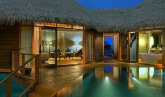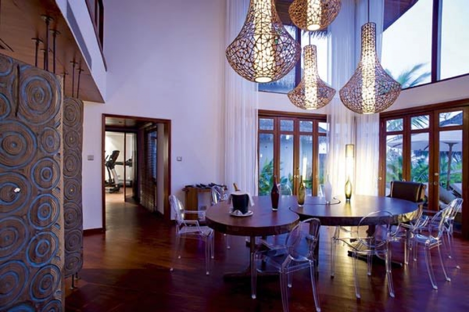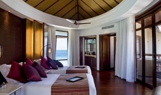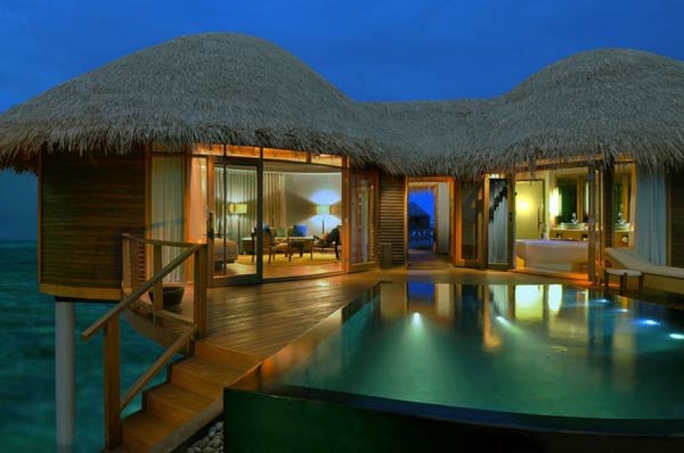 Il resort dispone di un’ampia gamma di sistemazioni esclusive, in totale 86 ville tutte con piscina privata. 20 beach villa ubicate direttamente sulla spiaggia, fronte mare e con giardino privato(350 mq), 8 double storey villa (ville a due piani di 410 mq con giardino), 57 water villa con terrazza (100 mq) e la fantastica villa presidenziale sulla spiaggia (700 mq). Tutte le ville sono arredate in stile moderno con ampio utilizzo di legno e marmo e dispongono di scrivania, area soggiorno, terrazza o balcone, doccia separata interna o esterna. Le sistemazioni sono dotate di collegamento WiFi, dvd, mini mac, tv con canali satellitari, impianto Hi Fi con connessione iPod, telefono, cassetta di sicurezza, minibar, selezione di vini, necessario per tè e caffè.