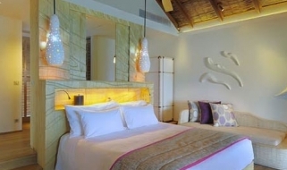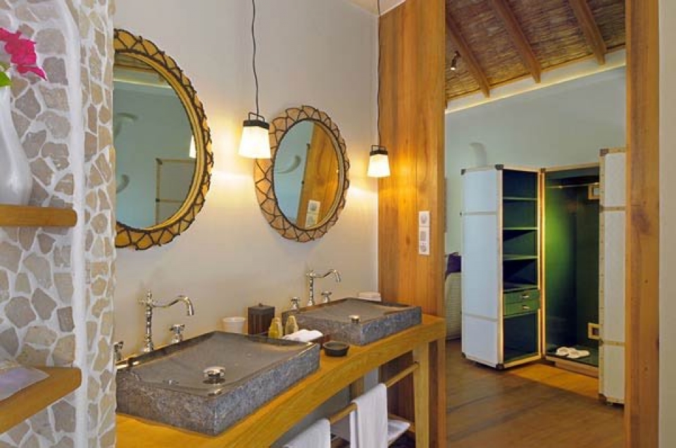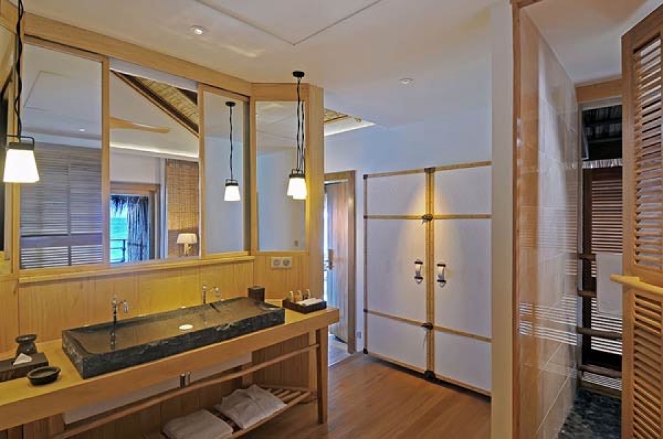 L'hotel dispone di 24 beach villa sulla spiaggia, 56 water villa e 30 senior water villa sull'acqua: si può scegliere tra il verde delle palme e l'azzurro dell'acqua della laguna, ma in ogni caso ci si troverà attorniati dall'eleganza e dalla raffinatezza di materiali naturali come legno e pietra.