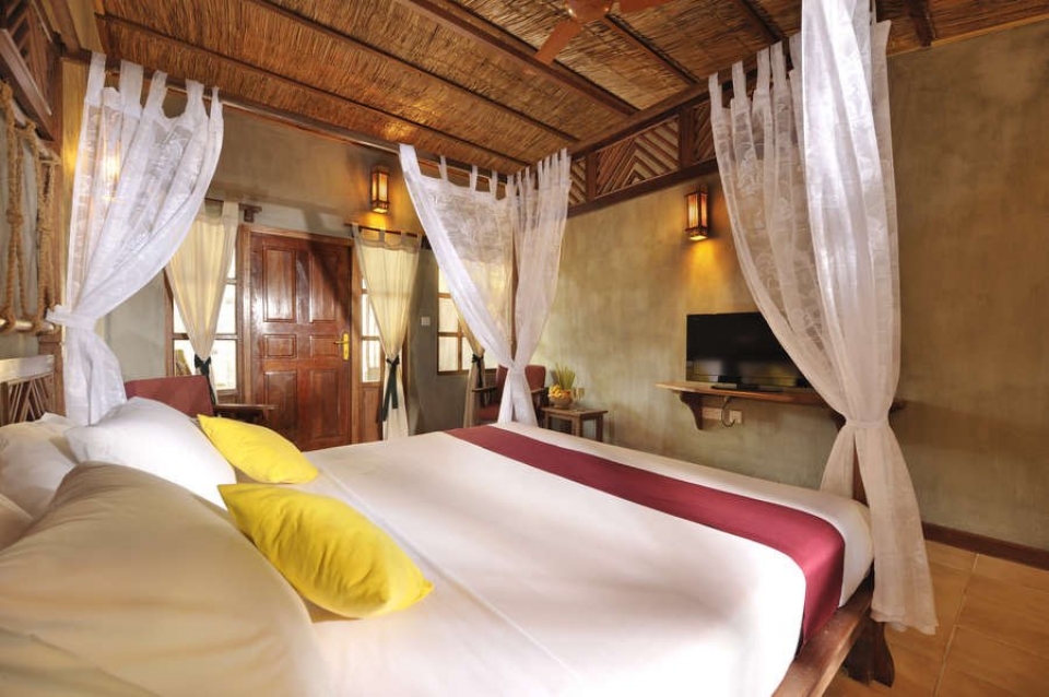 Il resort dispone di 75 camere suddivise in Beach Front e Deluxe Room, rispettivamente di 21mq e 60mq. Tutte le camere hanno aria condizionata, telefono, minibar, sitting area, terrazza, servizi privati con acqua calda e fredda. Le camere Deluxe hanno anche cassetta di sicurezza, wifi gratuito, necessario per te e caffè e tv, oltre open air bathroom e veranda.