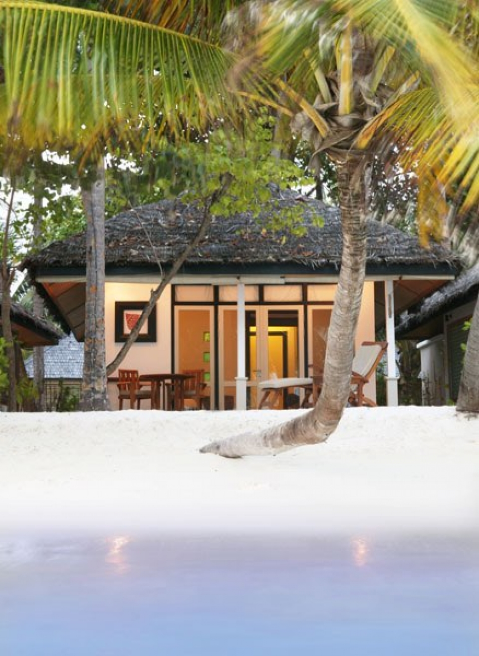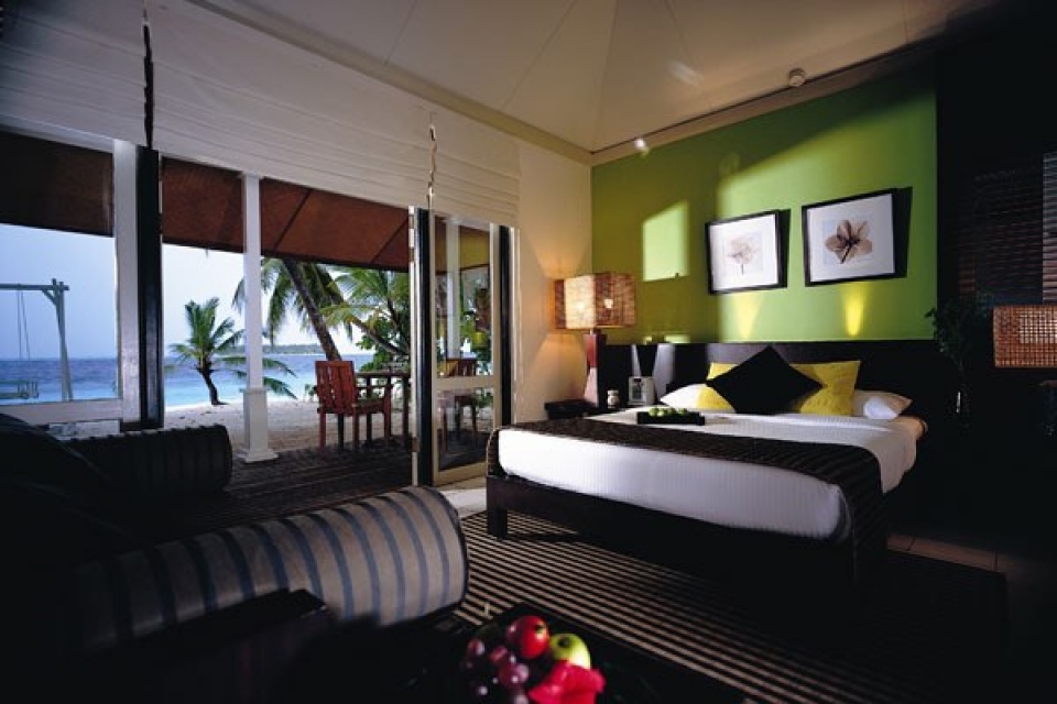 L'isola di Ihuru ospita uno dei più raffinati resort delle Maldive immerso in una lussureggiante vegetazione tropicale, il resort ideale per viaggi di nozze e per chi cerca il raffinato confort dispone di 45 ville di cui 10 dotate di open-air jacuzzi. Tutte le ville hanno una magnifica vista mare e sono dotate di aria condizionata, minibar, cassetta di sicurezza, asciugacapelli, doccia esterna, jacuzzi (solo le "jacuzzi villas"), bollitore per tè e caffè, veranda e giardino privato.