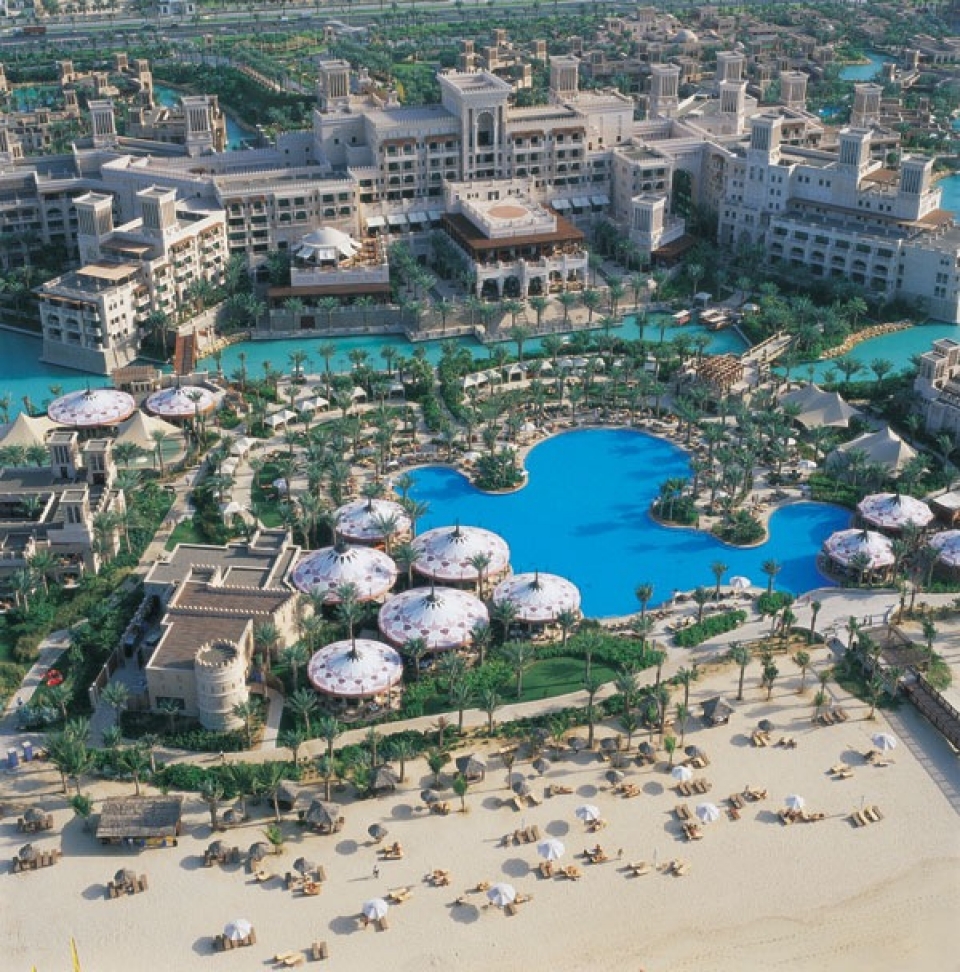 Questo complesso che rispecchia architettonicamente l'autentico stile arabo abbinato a servizi di alta qualità, è circondato da giardini ed attraversato da canali che collegano le tre aree di Madinat Jumeirah. Nel resort è stata realizzata una riproduzione di un’antico Bazaar arabo: Suq Madinat Jumeira dalla vibrante atmosfera tipica dei mercati arabi. Nel suq si trovano 75 negozi e numerosi locali.
