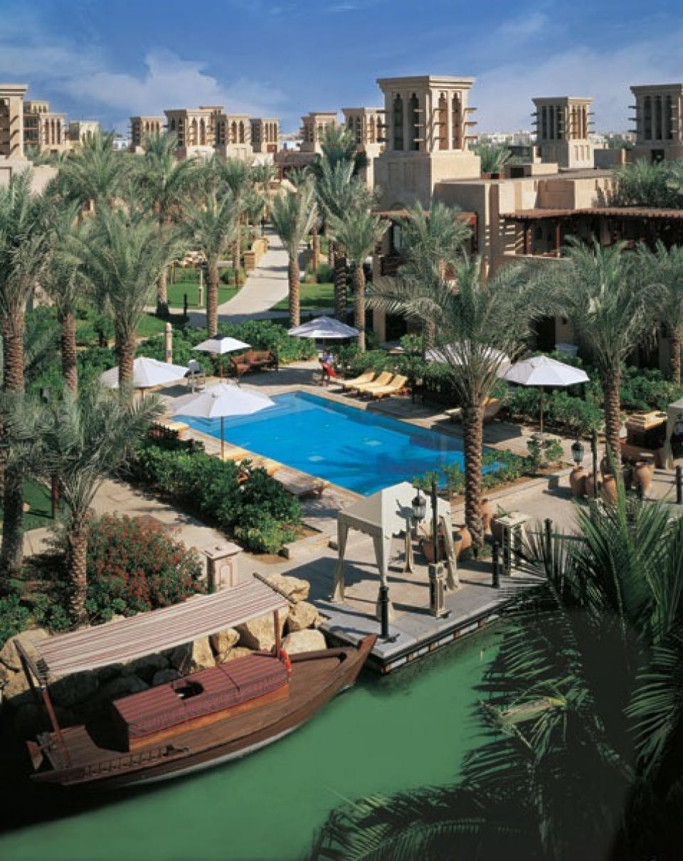 Madinat Jumeirah, siutato lungo la bella spiaggia di Jumeirah a circa 25 km dall'aeroporto di Dubai, si compone di 3 parti: Mina A'Salam, Al Qasr, Dar Al Masyaf.
