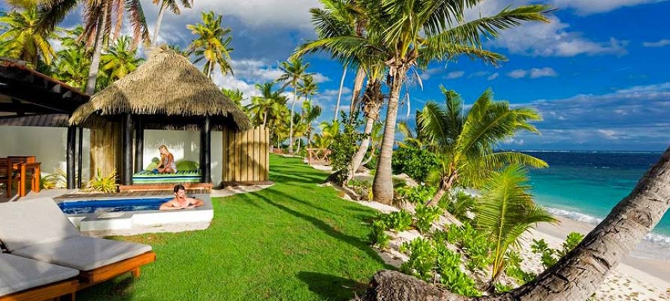 Le 14 Beachfront Villa sono situate in posizione isolata per il massimo della privacy sulla privata North Beach raggiungibile in golf cart o con una passeggiata. Le ville sono organizzate su due livelli; al livello superiore c’è la stanza da letto con un letto king size con vista verso l’Ocean Pacifico, doppio guardaroba, due ripiani per i bagagli, scrivania, aria condizionata e ventilatore a soffitto. Il soggiorno si trova al livello inferiore. La stanza da bagno presenta doppio lavabo in granito, doccia e toilet separate. Ogni villa è magnificamente completata all’esterno con arredamenti da giardino, un’ampia veranda coperta che si allunga verso la piccola piscina privata, e un gazebo con tetto di fronde e day bed. Una doccia esterna è accessibile dalla spiaggia o dalla vasca privata. Le ville possono ospitare un massimo di 3 adulti.