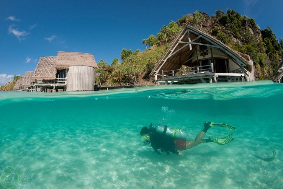 DIVING: Raja Ampat è un parco marino, le immersioni sono molto variegate grazie alla grande quantità di vita marina presente in quest'area: barriera corallina, oltre 700 specie di molluschi e 1.200 specie di pesci. La visibilità è di circa 25 mt. con temperatura dell'acqua di 26/28 gradi. I siti d'immersione sono oltre 60 di cui 20 raggiungibili in pochi minuti di barca dal resort.