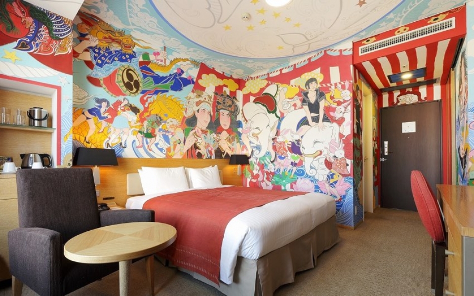 Una particolarità di questo hotel sono le Artist Room, camere di diversa categoria (Single, Queen e King) ognuna decorata da un diverso artista che richiama l’arte giapponese. Sono camere uniche nel loro genere per chi vuole un soggiorno ancora più particolare d immergersi subito nell’ambiente e nell’arte del paese.