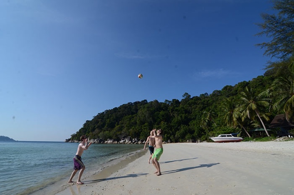 Situato a Pulau Perhentian Besar, la più grande isola dell’aricpelago delle Perhentian Islands che fanno parte del National Marine Park della Malesia, il Perentian Island Resort è una struttura immersa nella natura dell’isola, circondata dalla foresta pluviale, davanti ad una spiaggia bianchissima con mare cristallino e barriera corallina a pochi metri dalla riva.