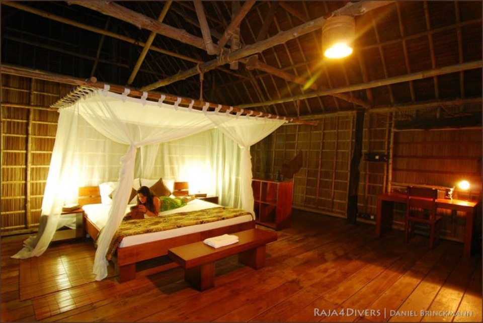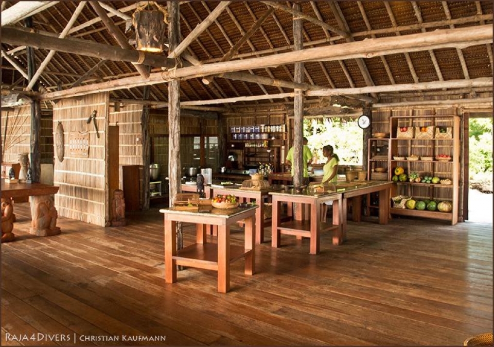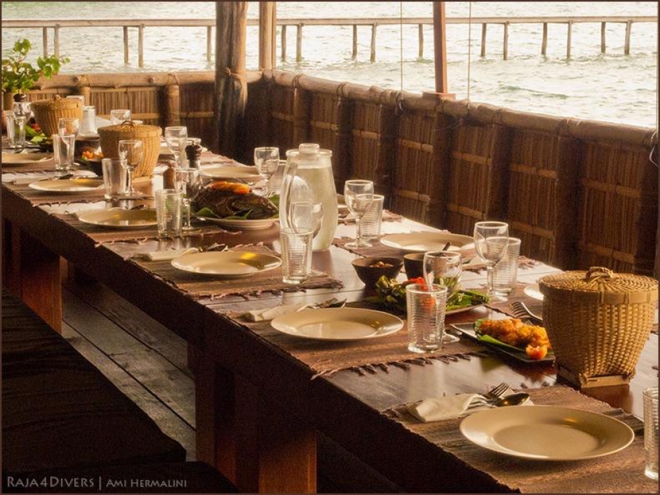Il resort dispone di bar ristorante; Raja4 Divers è eco friendly in quanto molti dei cibi usati per i pasti sono prodotti nei villaggi locali così come i materiali usati per la costruzione provengono da artigiani locali.