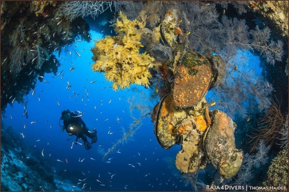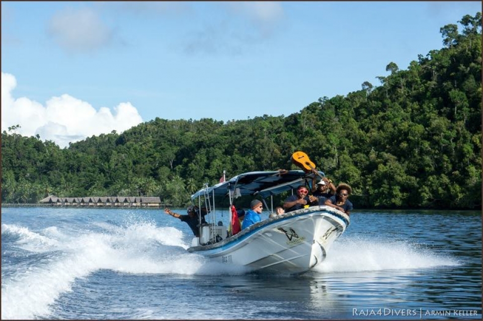 DIVING: Raja Ampat è un parco marino, le immersioni sono molto variegate grazie alla grande quantità di vita marina presente in quest'area: barriera corallina, oltre 700 specie di molluschi e 1.200 specie di pesci. La visibilità è di circa 25 mt. con temperatura dell'acqua di 26/28 gradi. I siti d'immersione sono oltre 60 di cui 20 raggiungibili in pochi minuti di barca dal resort.