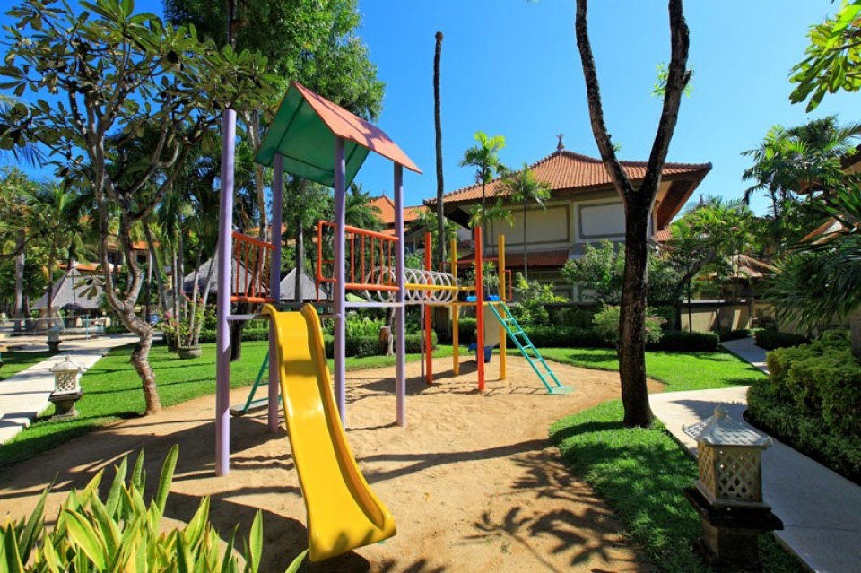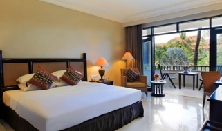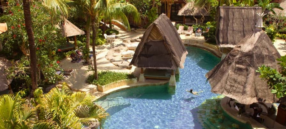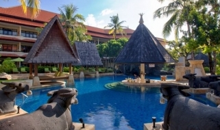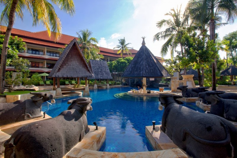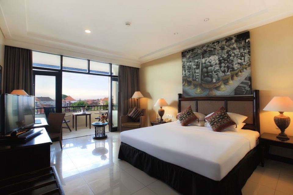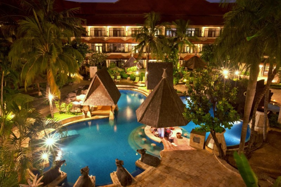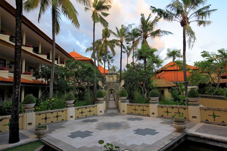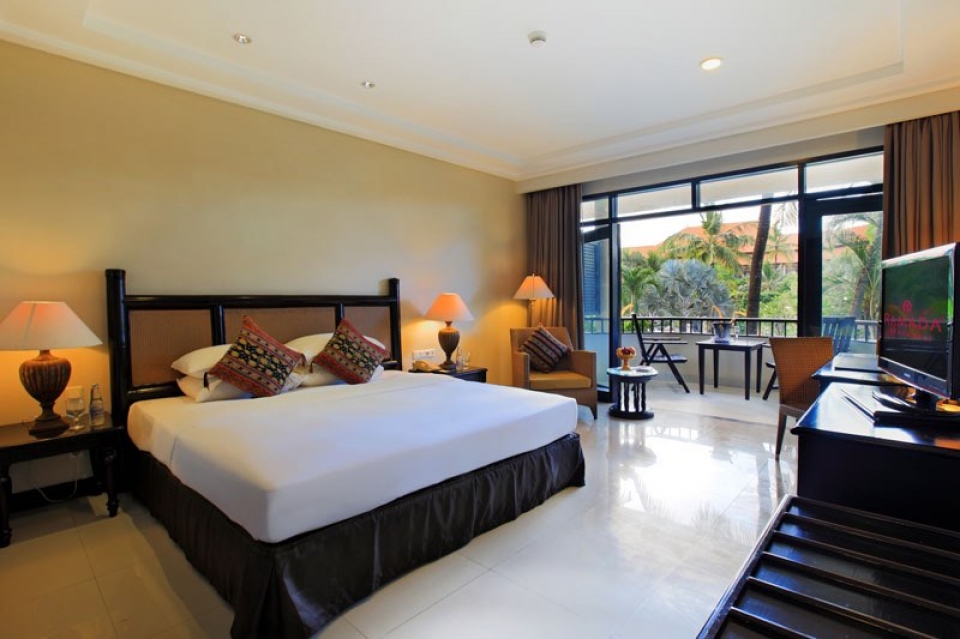 Dispone di 180 camere suddivise in superior, deluxe e alcune unità “balinese style”, tutte immerse nei rigogliosi giardini tropicali, finemente arredate e dotate di comfort moderni e stile tradizionale. Tutte le camere dispongono di aria condizionata, asciugacapelli, bottiglia d'acqua gratuita, caffè /te, cassaforte, minibar, telefono e televisione. La piscina, ampia e invitante, è contornata dai tipici “balè balong”, gazebo dai caratteristici tetti in fogliame e si trova sulla spiaggia con bellissima vista sulla penisola di Benoa.