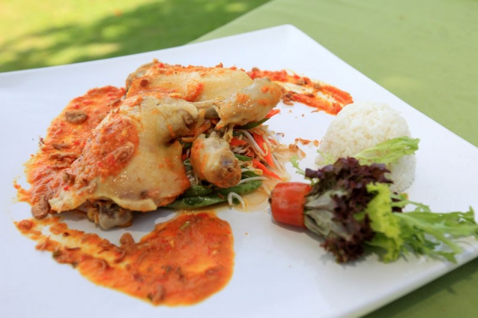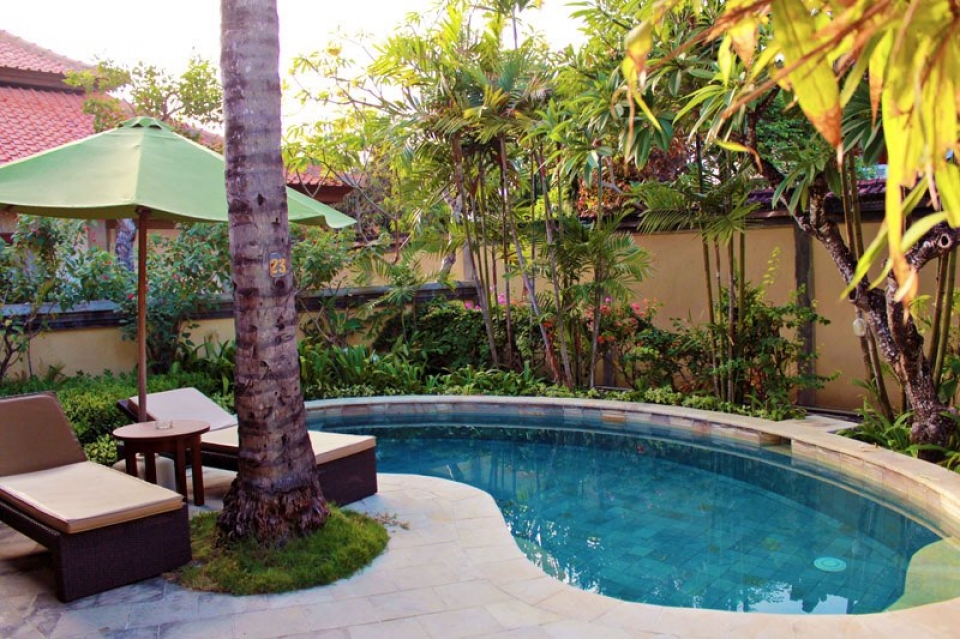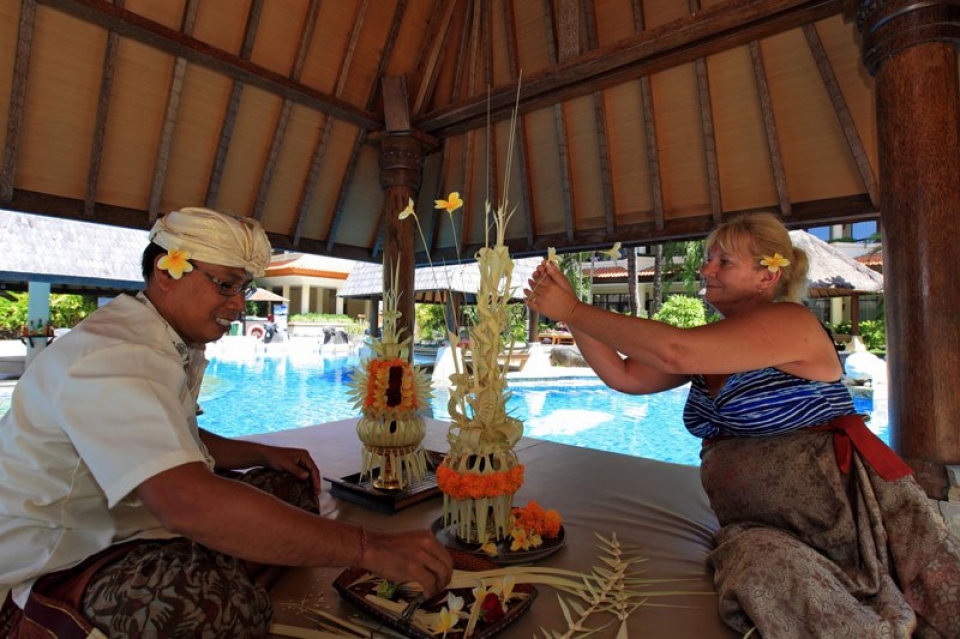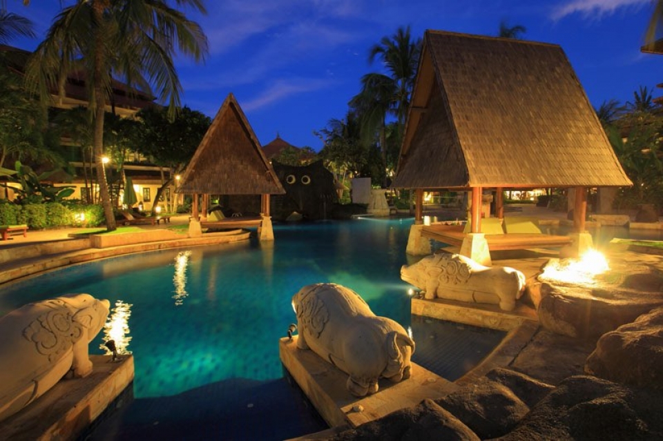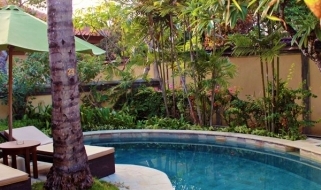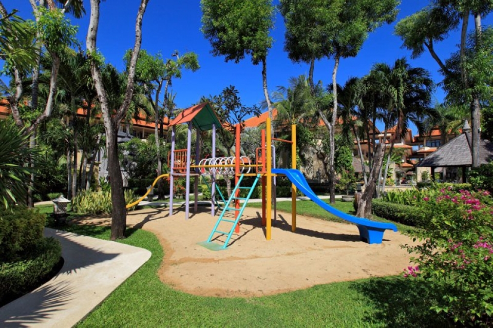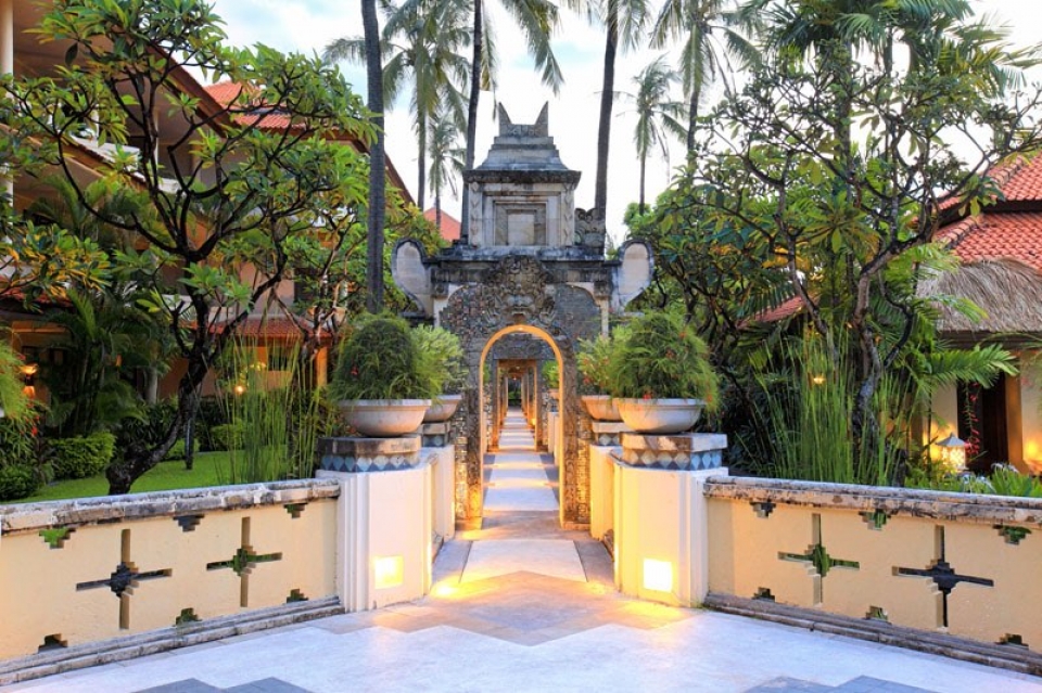 Dispone di 180 camere suddivise in superior, deluxe e alcune unità “balinese style”, tutte immerse nei rigogliosi giardini tropicali, finemente arredate e dotate di comfort moderni e stile tradizionale. Tutte le camere dispongono di aria condizionata, asciugacapelli, bottiglia d'acqua gratuita, caffè /te, cassaforte, minibar, telefono e televisione. La piscina, ampia e invitante, è contornata dai tipici “balè balong”, gazebo dai caratteristici tetti in fogliame e si trova sulla spiaggia con bellissima vista sulla penisola di Benoa.