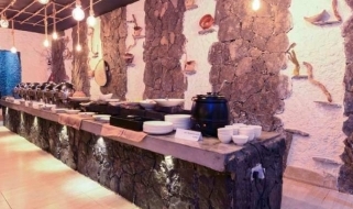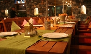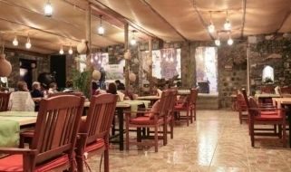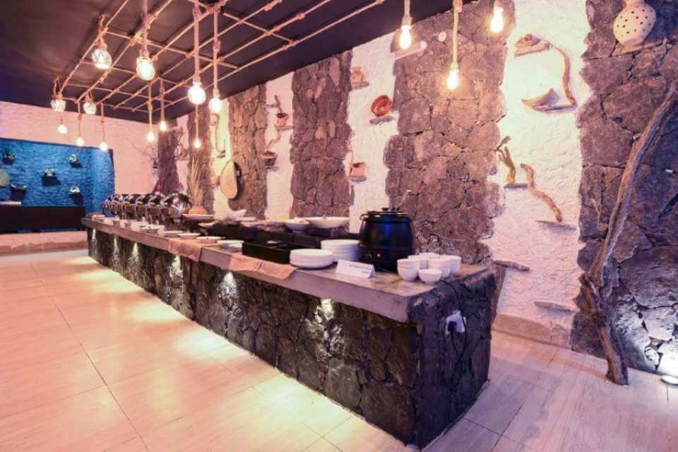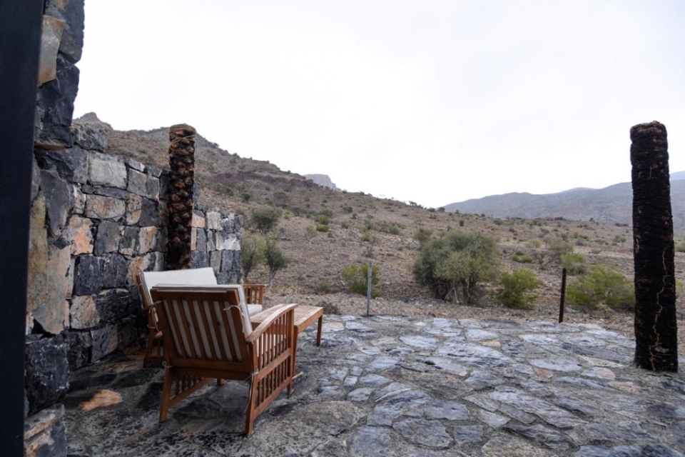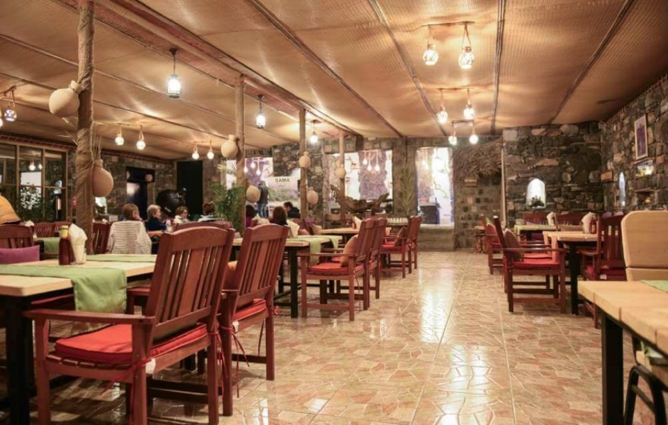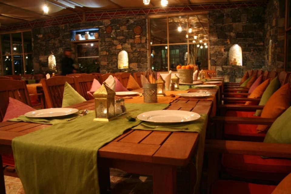 Il ristorante offre un'atmosfera sofisticata ma rustica con vista sulla montagna di Jebal Shams. I menù per colazione, pranzo e cena sono realizzati con ingredienti freschi locali.