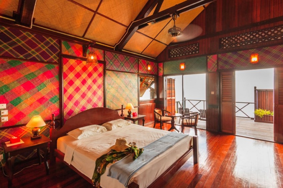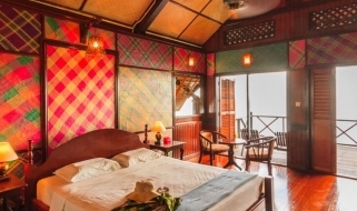 Le camere, a due/tre letti, sono dotate di servizi privati, aria condizionata, ventilatore a pale e veranda. Una serie di passerelle collega i bungalows alla zona ristorante dove vengono serviti pasti molto curati ed alla piattaforma del diving.