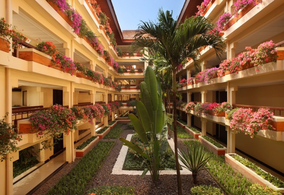 Il resort, costruito in stile balinese moderno, dispone di 353 tra camere e suites di varia categoria distribuite in un lussureggiante giardino. Sono disponibili Family Studio per le famiglie, composte da camera matrimoniale e camera per i bambini.